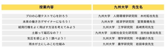 今回は、約30のコンテンツが勢揃い、共催の九州大学の先生方による小学生向けの授業が受講できる特別企画 「九州大学の先生による特別授業」 も6講座開催します。
