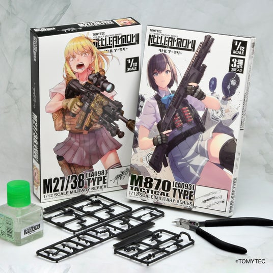 リアルな銃火器を精密に再現するプラモデル『リトルアーモリー』。2014年の発売以来、200種を超える製品を展開し、多彩なイラストレーター陣が描く「リアルミリタリー×女子高生」のパッケージアートが魅力のシリーズです。そのビジュアルは模型の枠を越えてキャラクターとして息づき、ノベル・コミック・グッズなど、幅広いメディアへと広がり、ついに舞台化されることが発表されると、瞬く間に話題となりました!