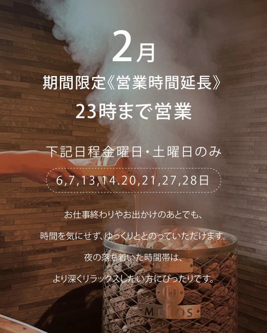 23時までの延長営業日と併せて体験すれば、夜のサウナ時間がさらに充実します。