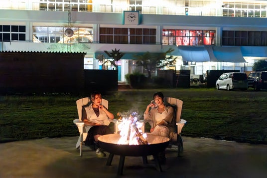 宿泊では焚き火やバーベキューを楽しむことができ、校舎内にはアートギャラリーも併設。