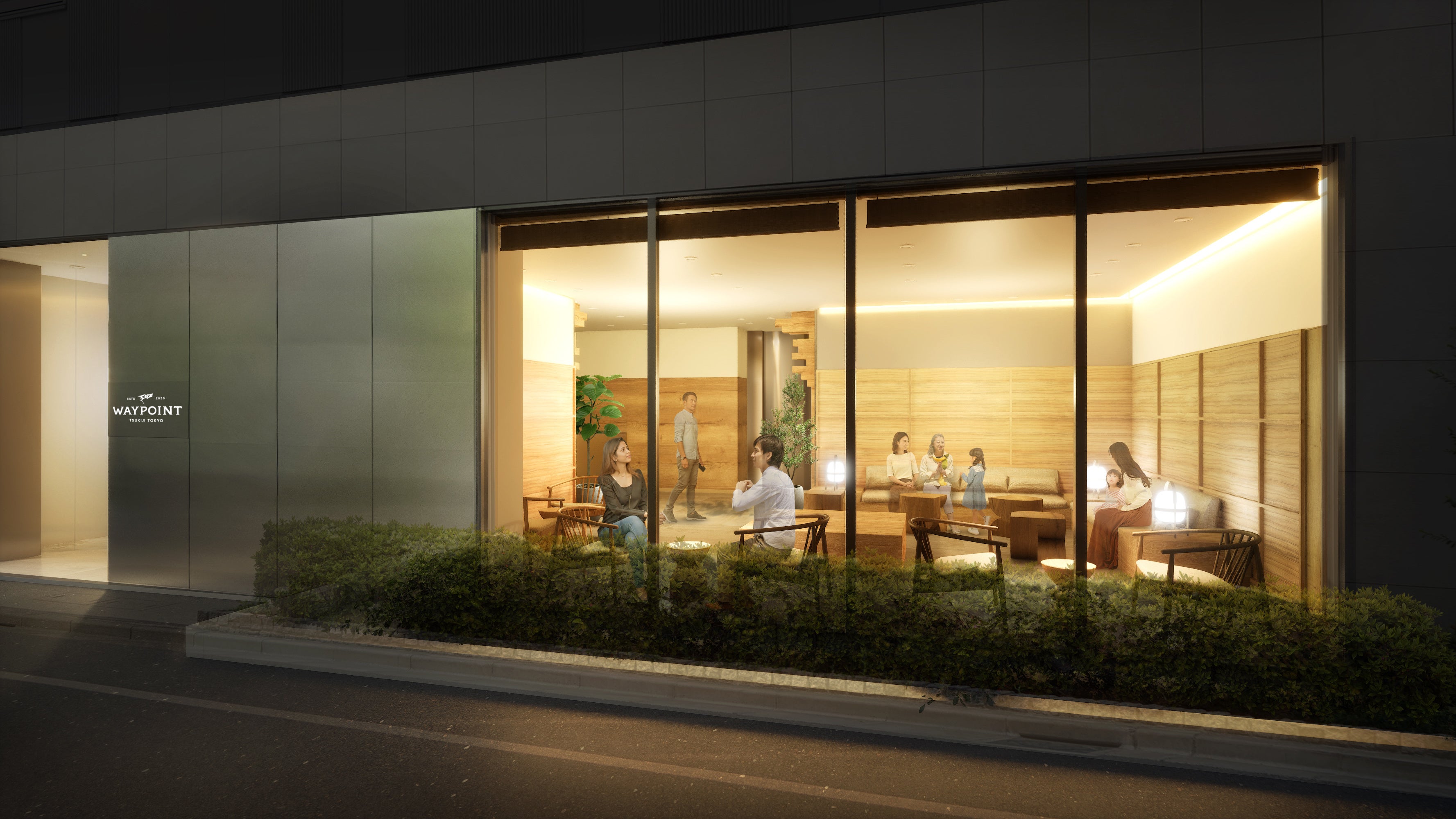 新ブランド1号物件は既存施設をアパートメントホテルとしてリノベーションした「WAYPOINT TSUKIJI TOKYO」で、2026年4月1日に開業します。2月2日より公式WEBサイトを開設するとともに、宿泊予約の受付を開始いたします。
