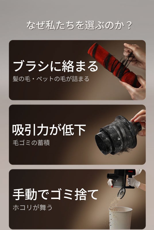 **「ブラシに毛が絡まない掃除機」**という、これまで不可能とされてきた体験を実現しました。