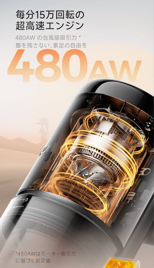 独自の950W超高出力モーターを開発。最大吸引力:65,000Pa
