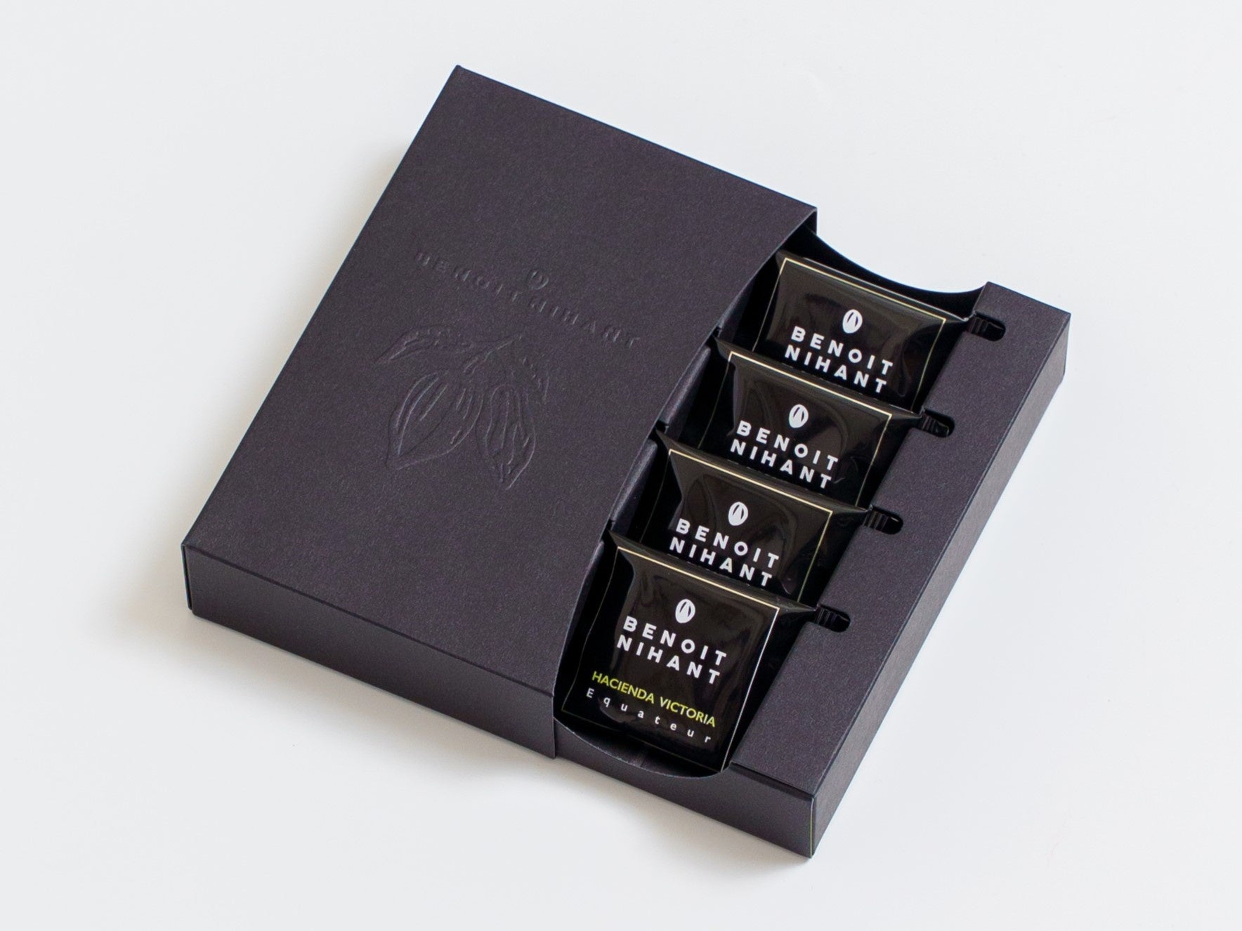 「BENOIT NIHANT」は、元エンジニアという経歴を持つベルギー出身のカカオ職人ブノワ・ニアン氏※が2006年に立ち上げたチョコレートブランドです。世界中の農園を巡り、「単一農園」「単一品種」のカカオ豆を厳選。伝統製法と独自の感性でつくり上げるチョコレートは、カカオが育った土地(テロワール)の特徴を繊細に表現しています。また、ペルーに保有するカカオ農園では、環境に配慮した農園作りやカカオ生産者とのフェア・トレードに取り組んでいます。