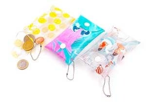 クリアポーチ、オーロラポーチ、フラットケース、EVAケース、クリアマルチケース各種(Sサイズ、カラビナ付など)まで幅広く展開。配布向け、物販向け、セット外装向けなど、目的別に“最適解”を選びやすい構成です。
