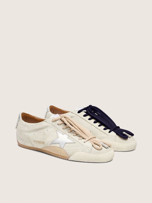 True-Starは、ブランドのヘリテージを大胆に進化させたモデルとして昨年誕生しました。1960年代後半のランニングシューズの美学にインスパイアされたこのデザインは、ヴィンテージの要素を現代のクラフトマンシップで再解釈しています。アイコニックな「Super-Star」のシルエットを削ぎ落とし、スクエア効果のあるトウキャップ、折りたたみ可能なヒールタブ、そしてヴィンテージのランニングトラックを彷彿とさせる緻密なステッチなど、あえて未完成のまま残された意図的なディテールを取り入れています。
