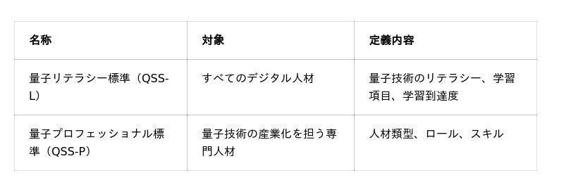 量子スキル標準は、量子リテラシー標準(QSS-L)と量子プロフェッショナル標準(QSS-P)から構成されます。