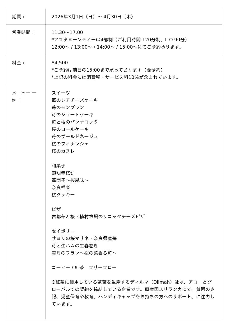 ノボテル奈良(所在地:奈良県奈良市)は、2026年3月1日(日)~ 4月30日(木)までの期間限定で、桜が咲き誇る奈良の春に苺の甘酸っぱさを添えて、ノボテル奈良から、春限定のアフタヌーンティーをお届けします。