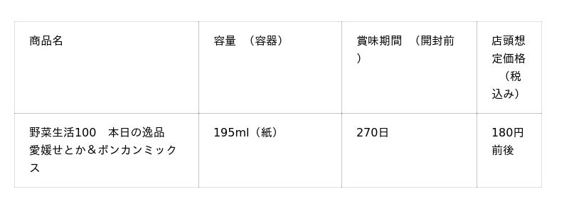 このたび発売する「野菜生活100 本日の逸品 愛媛せとか&ポンカンミックス」は、愛媛県産せとかの濃厚な甘みととろけるような口あたりに、ポンカンの甘くてやさしい香りが後からふわりと重なる味わいの野菜・果実100%ミックスジュース※1です。砂糖不使用で、1日分※2のビタミンCを摂ることができます。自分へのご褒美に、贅沢感や季節感を楽しみながら手軽に野菜をとりたいときにぴったり。おやつやデザートタイム、リラックスしたいシーンにもおすすめです。