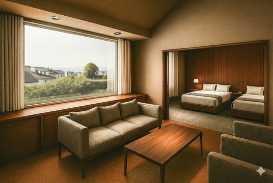 ※開業準備中のため、写真の内装・調度は計画段階のものです(江差屏風を配したリビング)。仕様は変更となる場合があります。