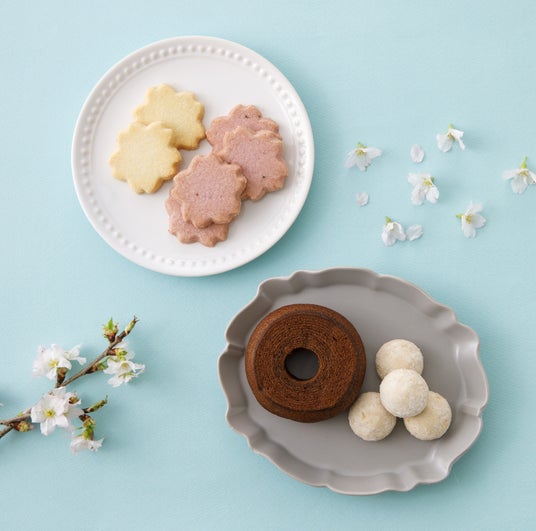 さくらの型抜きクッキーがこの季節にぴったり!さくらの花をかたどったクッキーは、春らしさ満点の一品。ほんのりさくらが香るクッキーに加え、ホロホロとした口当たりが特長のポルボローネ、チョコレート味のバウムクーヘンなど、3種の焼菓子を詰め合わせました。