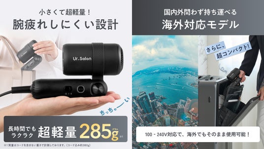 【Ur.Salon】新生活の身支度をスマートに。速乾×コンパクトな「ジェットモンスターマイクロドライヤー02」新色のブラック発売