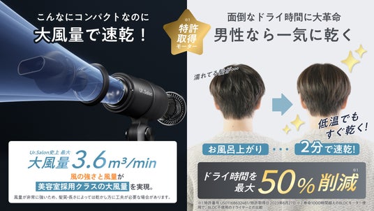 ●【Ur.Salon】“ジェット風量”で最大50%速乾|選べる2種の『ジェットモンスターマイクロドライヤー』新発売https://prtimes.jp/main/html/rd/p/000000241.000036491.html