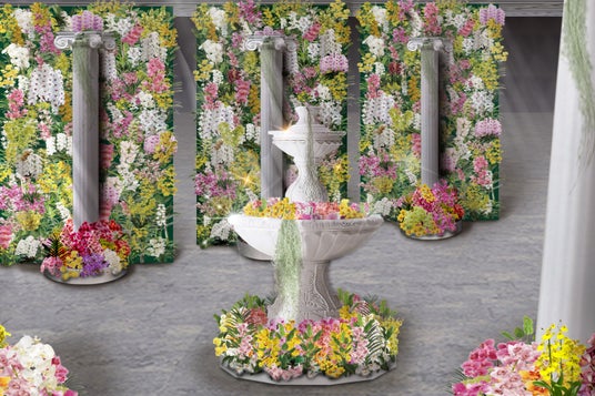 ●主催者による会場展示は蘭と神殿が織りなす世界観をイメージ