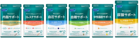 株式会社ファンケルは、機能性表示食品「健康数値サポートシリーズ」のパッケージデザインをリニューアルいたします。「健康数値サポートシリーズ」は、健康診断で高めと指摘されがちな数値が気になる方にお勧めのサプリメントシリーズで、「内脂サポート」「コレステサポート」「血圧サポート」「血糖サポート」「中性脂肪サポート」「尿酸サポート」の6点をラインアップしています。2月上旬より順次、通信販売・直営店舗・一般流通にて切り替えを行ってまいります。