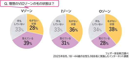 近年、フェムケア&フェムテック市場は年々増加傾向にあり、女性のデリケートゾーンに対するケア意識が高まっています。調査によると、Vゾーンは「整える派」が多い一方、I・Oゾーンは「毛がない状態(つるつる派)」を求める人が3割を超えています。