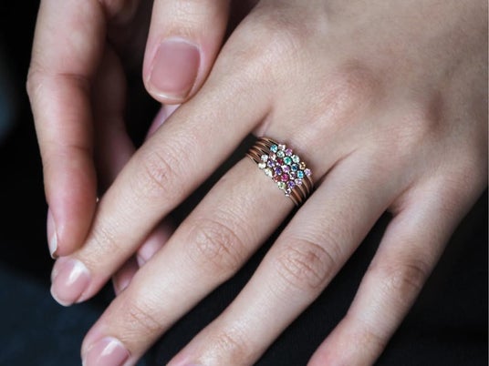 左右で異なる花のかたちは、冬から春へと移ろう一瞬と、咲き誇る姿を対比させた造形。終わりと始まりが同時に存在する、花の儚さと力強さを一つの指先に表現しています。