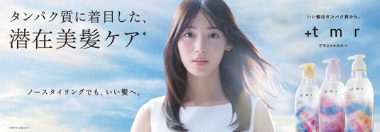 2024年2月の発売以来、一貫して“髪の主成分であるタンパク質に着目した髪の本質ケア”を提案し、生活者の皆さまの今日、そして明日を「髪も、気持ちまでも、少しずつ晴れやかに」できるブランドを目指してきた「+tmr」が、この春お届けするのは、目まぐるしく変化する日常の中で、“ノースタイリングでも、いい髪”という自然体の美しさ。風になびく自然な髪の動き、そして穏やかながらも芯のある表情が印象的な本作では、タンパク質に着目した髪を芯まで整える「潜在美髪ケア※1」を背景に、「+tmr」が提案する“ノースタイリングでも、いい髪”へという価値を象徴的に描いています。
