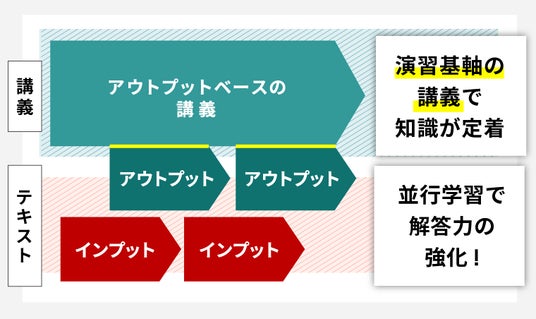 さらに、問題演習をベースに講義が進んでいくため、講義を聞くだけの時間は最小限にし、出題のされ方や、公式・パターンの当てはめ方を具体的な形で理解しながら先に進むことができます。
