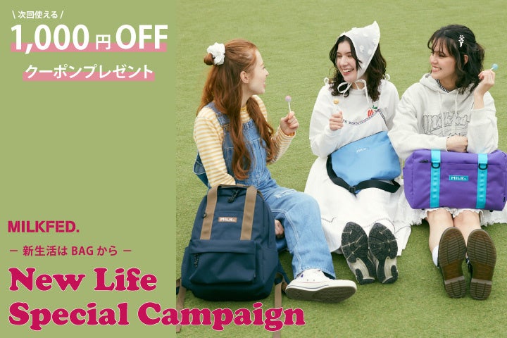2月6日(金)よりオフィシャルオンラインストア「calif」と全国のMILKFED.7店舗にて、対象バッグをご購入いただいたお客様全員に「次回使える1,000円OFFクーポン」をプレゼントいたします!