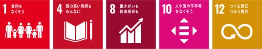 また、SDGsの17の目標のうち、「1:貧困をなくそう」「4:質の高い教育をみんなに」「8:働きがいも経済成長も」「10:人や国の不平等をなくそう」「12:つくる責任 つかう責任」などのゴールに通じ、就業機会の平等にも繋がります。