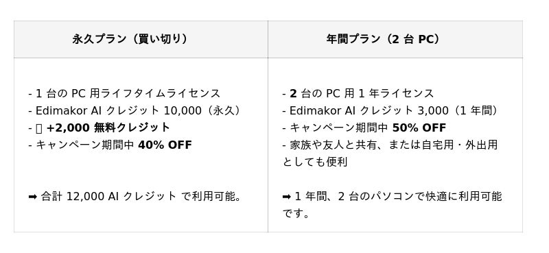 Edimakor のバレンタインキャンペーンでは、まず有料プラン向けの特別割引をご用意しています。