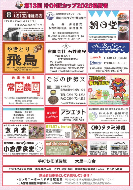 第13回汁ONEカップ2026実行委員会事務局(常陸太田市観光物産協会内)〒313-0013 茨城県常陸太田市山下町949-9