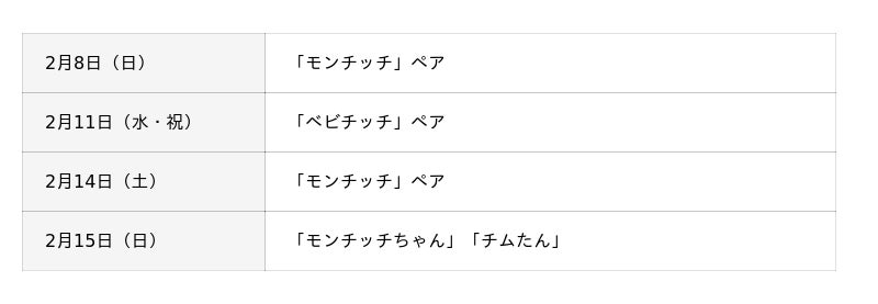 〈キャラクター出演スケジュール〉