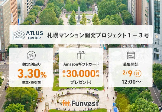 「未来をわかちあう投資」を提供する「Funvest(ファンベスト)」(以下、Funvest)は、「アトラスグループ 札幌マンション開発プロジェクト1-3号」(以下、本ファンド)の募集を2/9より開始しますので、お知らせいたします。
