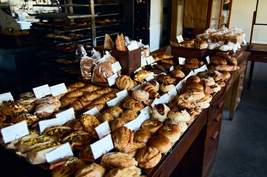 すべてのパンに麹を使って焼いた「涼太郎」(愛知県名古屋市)の店頭。ハード系や惣菜パンなど、約50種類が並ぶ。ゴヅゴツして無骨なパンだが、見た目に反し麹のふくよかな旨みと甘みが特徴。