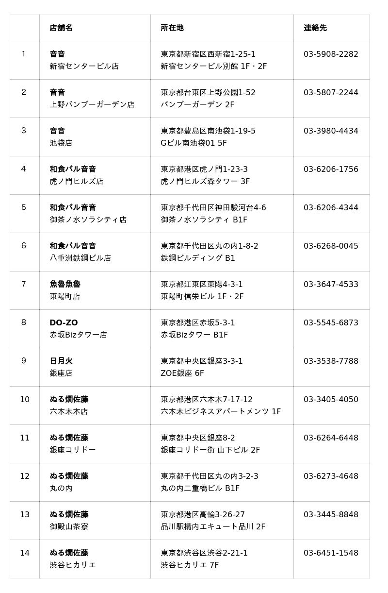 【フェア参加店舗】全14店舗