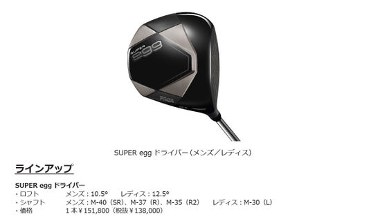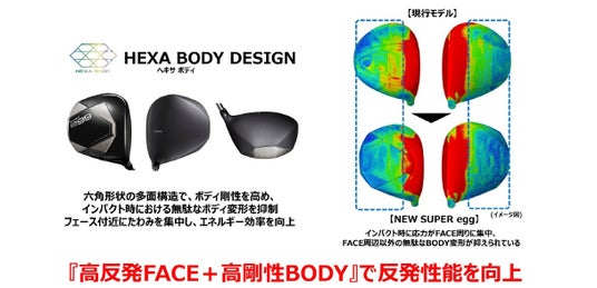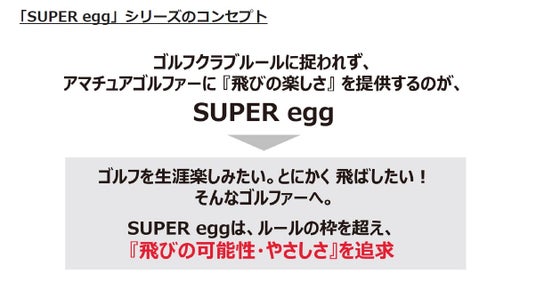 (株)プロギアは、SLEルール適合外の高反発設計で、飛距離が落ちてきたゴルファーに飛ばす楽しみを提供し続ける「SUPER egg(スーパー・エッグ)」シリーズから、飛びの可能性を徹底追求し、高反発フェースと六角形状の高剛性ボディでシリーズ最高となる反発性能を実現した「SUPER egg ドライバー」を3月13日から発売します。