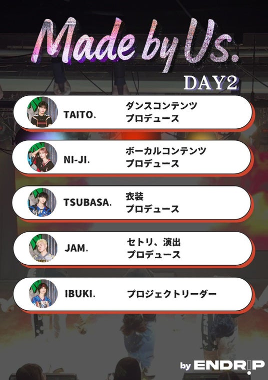 DAY1でダンスを担当したTSUBASA.は、今回は衣装を担当します。