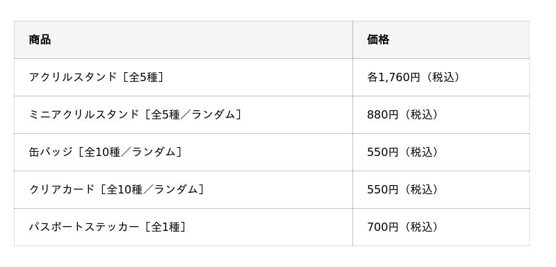■店舗販売グッズ ラインナップ