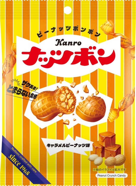 カリッと砕ける、ザクザク食感のピーナッツボンボン!カンロ「ナッツボン キャラメルピーナッツ味」発売