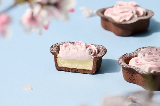 花型のココアタルト生地となめらかでコク深いミルキーなチーズの味わいに、ふわりと桜が香り、やさしく甘じょっぱい桜の味わいをお楽しみいただけます。