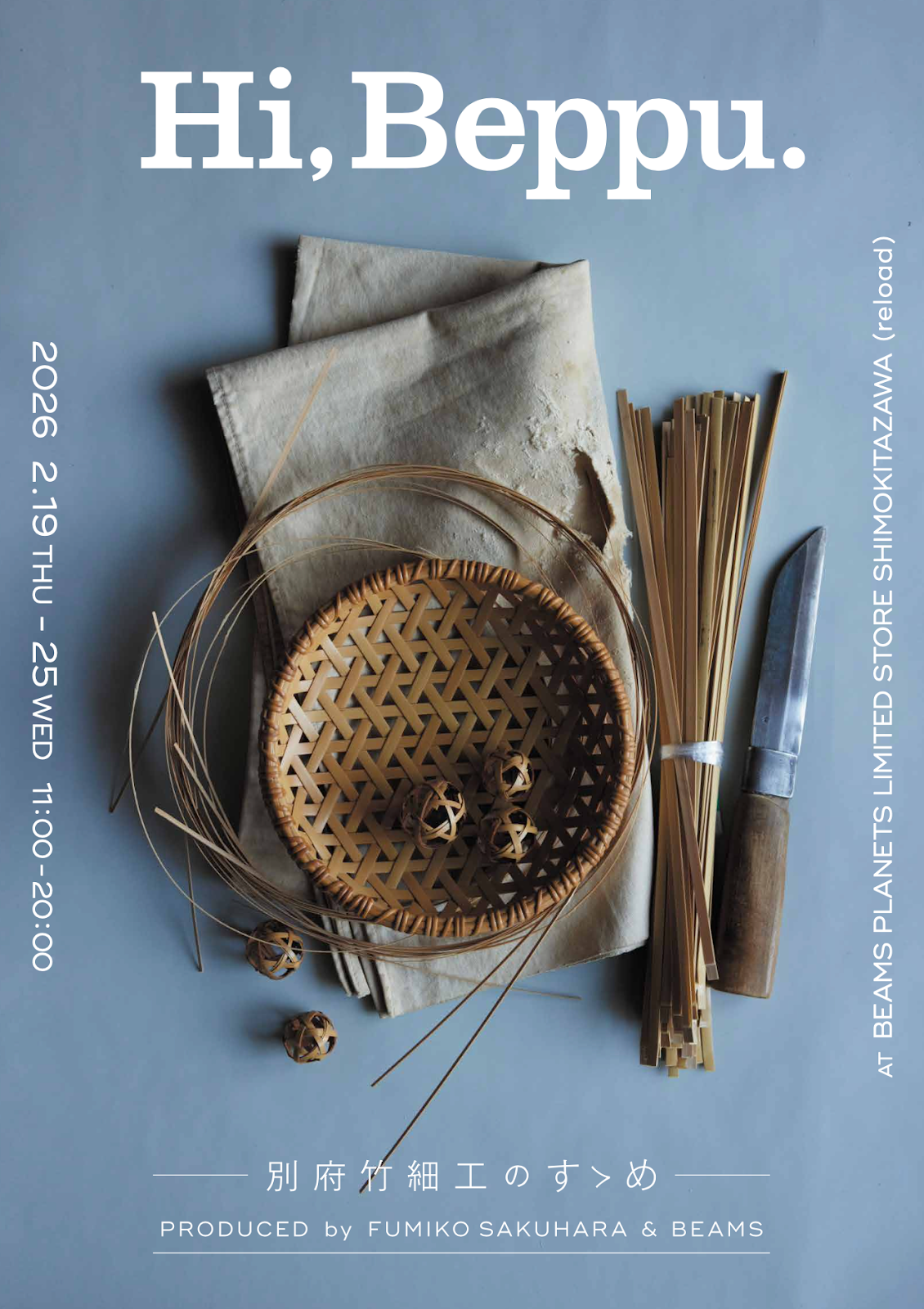 別府市と共にインテリアスタイリスト・作原文子氏を迎え、別府の伝統工芸”竹細工”の新たな可能性を表現する展示イベント『Hi, Beppu. ー別府竹細工のすゝめー』を、2026年2月19日(木)~2月25日(水)東京・下北沢の「reload」内の「ビームス プラネッツ リミテッドストア 下北沢」にて開催いたします。