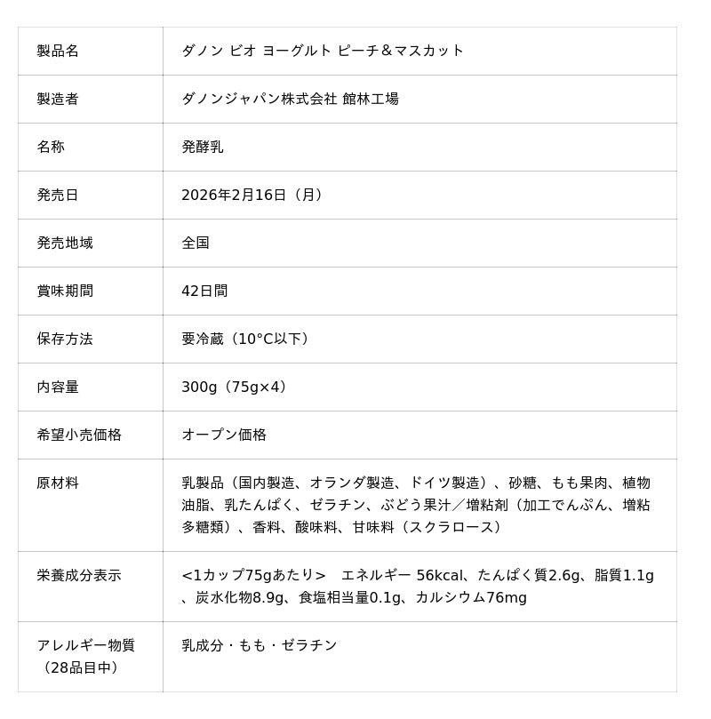 ダノン ビオ(R)から春の新作2品が登場!「世界旅行」シリーズ第5弾・フランス編「ピーチ&マスカット」と、復活投票1位「洋梨&マスカット」を2月16日発売