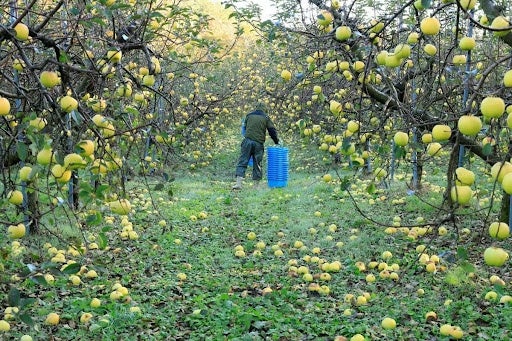 モホドリ蒸溜研究所では、アップルブランデーの製造・販売を行っており、原料となるりんごの栽培を自社で手がけるほか、りんご産業における農家の高齢化や後継者不足による耕作面積の減少、次世代の新規参入などの課題解決策として、品種を問わず一定価格で市場に出せないりんごを買い取りを行い原料として使用するなど、りんご農家の収益安定化を目指しています。また、製造工程で発生する残渣(発酵かす、搾りかす)をりんご栽培の際に堆肥として利用するなど、アップサイクルによる資源の有効活用にも取り組んでいます。