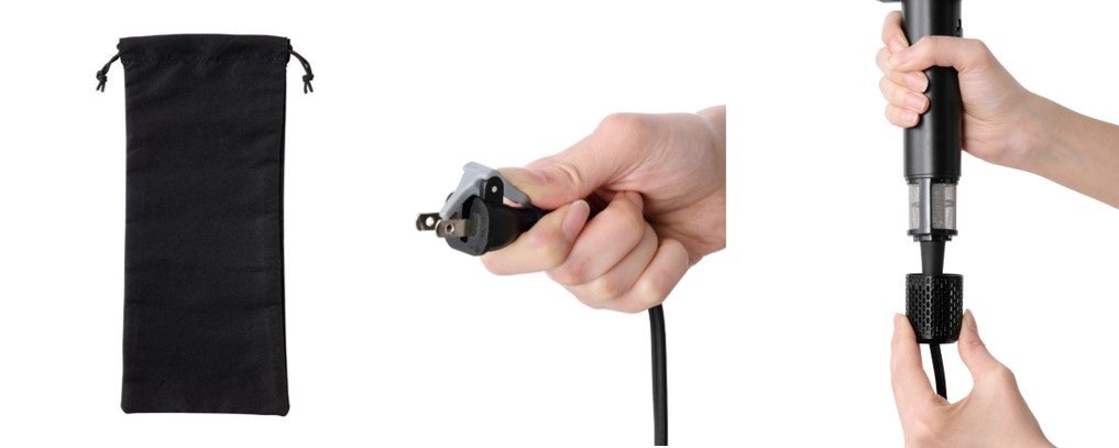 - 出し入れが簡単な巾着型ポーチ付きで、コードもすっきり収納できます。バッグの中で散らからず、持ち運びにも便利です。- ラク抜きプラグで取り外し簡単。レバーを押すだけでコンセントから簡単に抜くことができます。