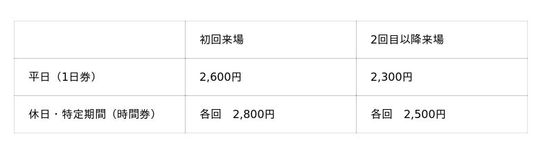 大人・子ども 同一料金(0歳は無料) ※税込価格