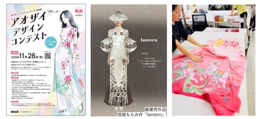 今回初開催の「JVFアオザイデザインコンテスト」は、日本の服飾学生にベトナム文化と触れ合う特別な機会を提供。応募数100点以上の中から選ばれた優勝作品は、ベトナムで実際にアオザイとして制作され、優勝者はベトナム会場での開会式で表彰される予定です。自らのデザインが国境を越え、異国の伝統衣装として実現する--この経験は、若き才能たちが世界を知り、国際的な視野を広げ、未来のクリエイターとして成長する貴重な機会となります。また、ベトナム側の服飾学生にはプロの日本人講師から着物制作を学ぶワークショップを開催、受講後ベトナム人参加者は本番までに着物の制作に取り組む、イベント本番では作品発表展示を行います。