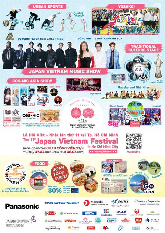 ホーチミン市およびジャパン ベトナム フェスティバル実行委員会は、2026年3月7日(土)~8日(日)の期間に、ホーチミン市9月23日公園にて「第11回 ジャパン ベトナム フェスティバル in Ho Chi Minh City(JVF)」を開催します。