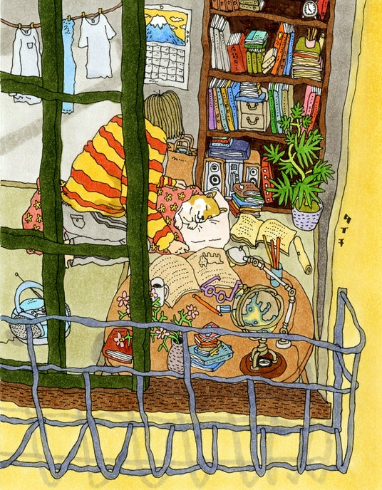 新作原画「あったかい部屋」ペン、コピック/紙 16x12cm