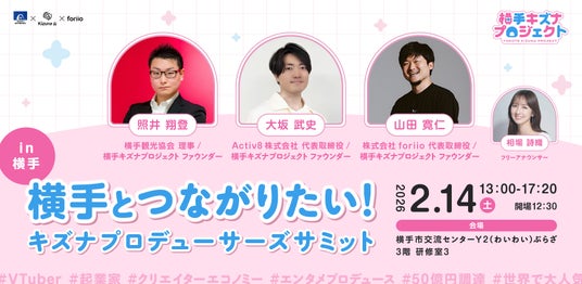 国内最大級のポートフォリオサービス「foriio」を運営する株式会社foriio(本社:東京都新宿区、代表取締役:山田 寛仁)は、一般社団法人 横手市観光協会(所在地:秋田県横手市、会長:高橋 淳)、Kizuna AI株式会社(所在地:東京都渋谷区、代表取締役:大坂 武史)と連携し、2026年2月13日(金)・14日(土)の2日間、秋田県横手市の伝統行事「横手の雪まつり」に合わせた特別企画「横手キズナプロジェクト」を開催いたします。