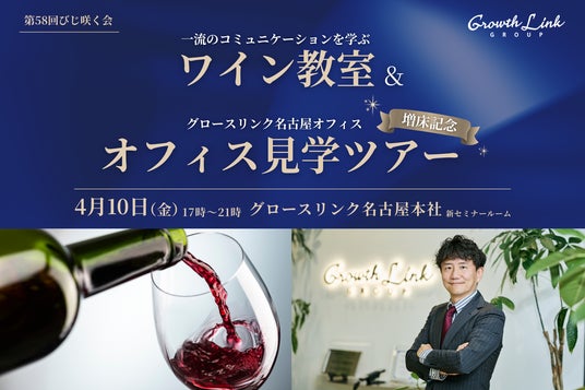 今回は、一流のコミュニケーションを学ぶワイン教室に加え、名古屋オフィス増床記念としてオフィス見学ツアーを行います。