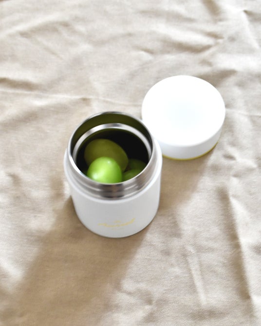 - スープジャーとしては小さめの容量180ml。手のひらサイズなのでポケットに入れられたり、お弁当箱やフードコンテナと一緒に持ち運びに邪魔になりにくい。