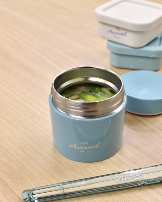 - 本体はステンレスの2層構造のスープジャー。味噌汁、めんつゆ、スープはもちろん、フルーツや凍らせたアイス、デザートなどにもおすすめです。お茶や白湯など少量の飲み物の持ち運びにも便利。※保温・保冷効力を参照