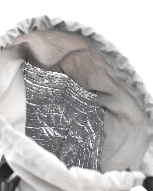 - 表地は軽いナイロン素材を使用。落ち着いていて、使いやすいカラーラインナップです。上部についたブラックタグがひきしまった印象。内側はアルミ蒸着シート加工です。
