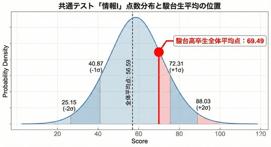 2026年度共通テスト「情報I」の本試験平均点は59.59点。前年から12点以上も下落する波乱の展開となりました。しかし、この難所においても、駿台高卒生は平均69.49点という高スコアを記録。全国平均を大きく凌駕し、駿台の指導力の高さを示す結果となりました。